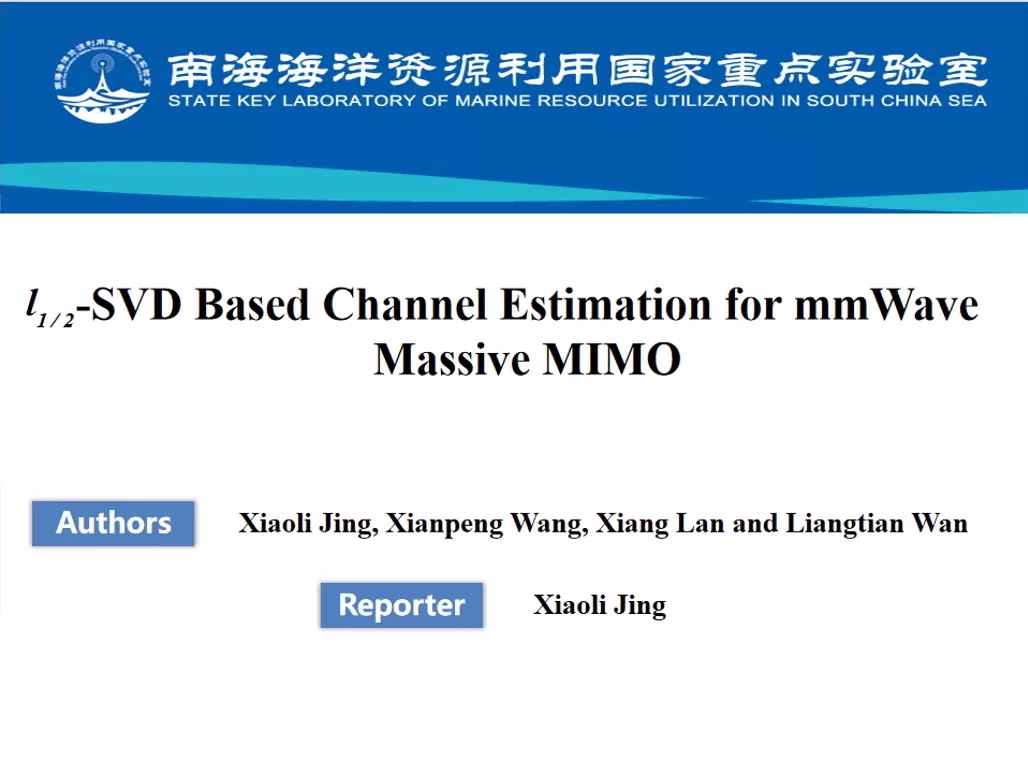宣讲主题:l1/2 -SVD Based Channal Estimation for mmWave Massive MIMO