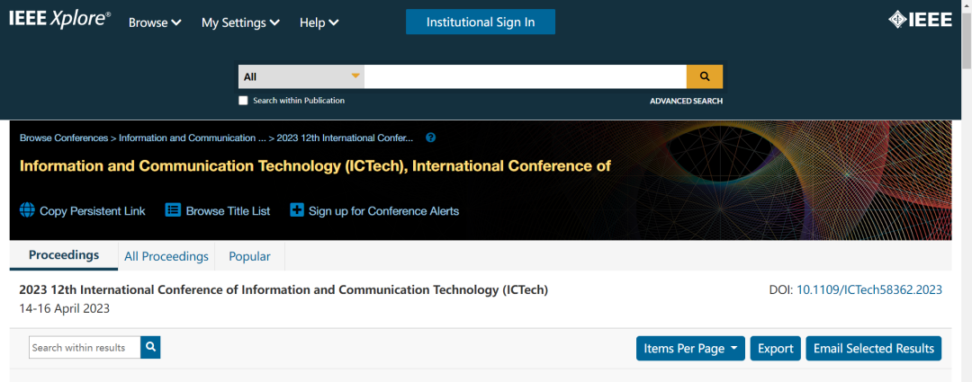 尊敬的作者: 您好! ICTech 2023会议论文集已由IEEE出版社出版至其数字图书馆IEEE Xplore,见刊链接如下: https://ieeexplore.ieee.org/xpl/conhome/10260741/proceeding(复制到浏览器打开)