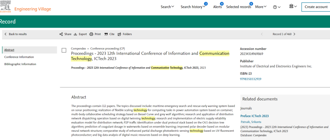 尊敬的作者: 您好! ICTech 2023的会议论文集均已实现EI检索,作者们可自行登录 EI 数据库查询检索。如没有查询权限,可关注IRNet国际学术交流中心微信公众号后,在对话框或文章下留言。